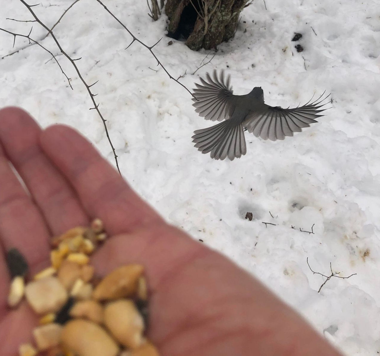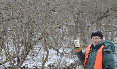 successful in having chickadees, titmice, and nuthatches come to his