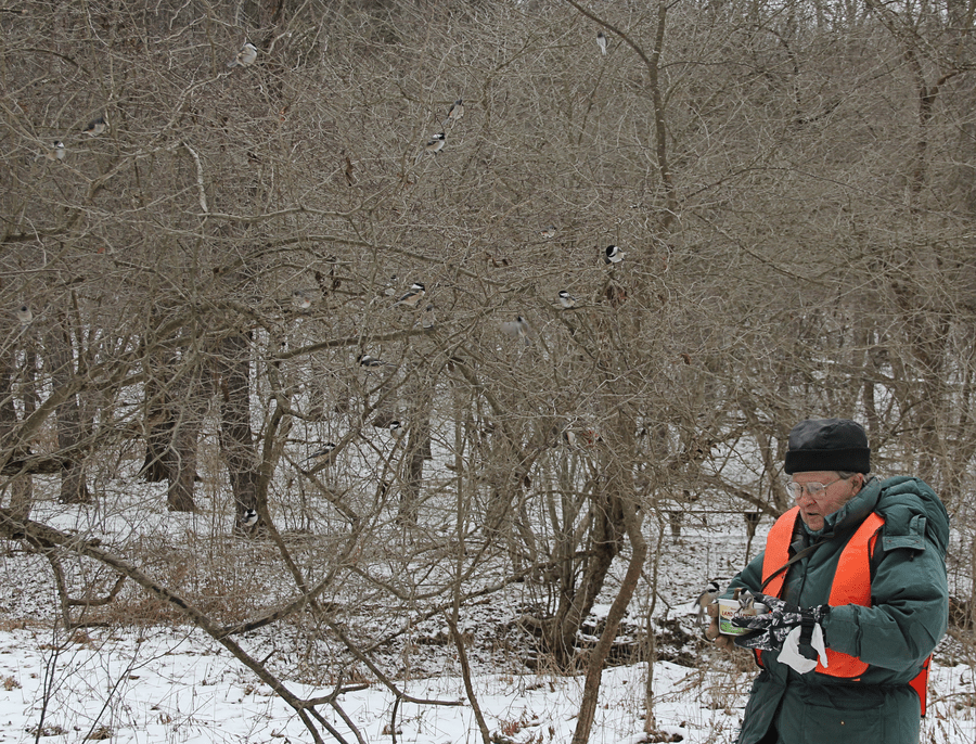 Ray Winstead with two Chickadees