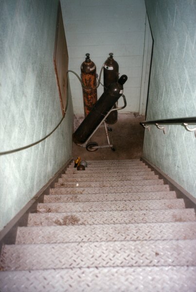 Helium tanks and tube leading to roof.
