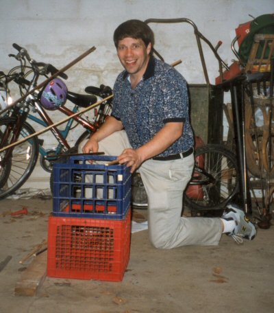 Ron See helping to build a container for the panels.