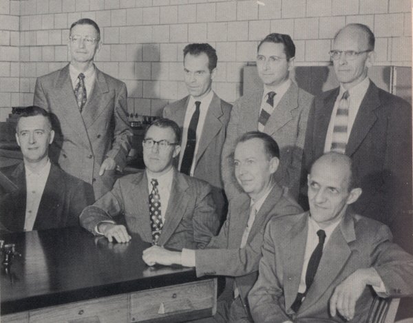 standing: Merrill B. Iams (biology), Dr. Donald E. Hoffmaster (biology),