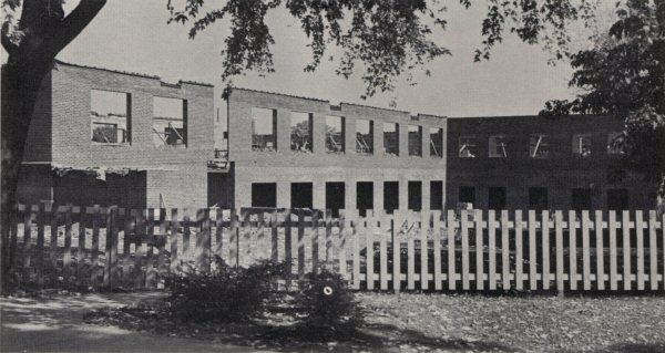 The second Jane E. Leonard Hall was built in 1953, dedicated May 22, 1954, and then razed in 2017.