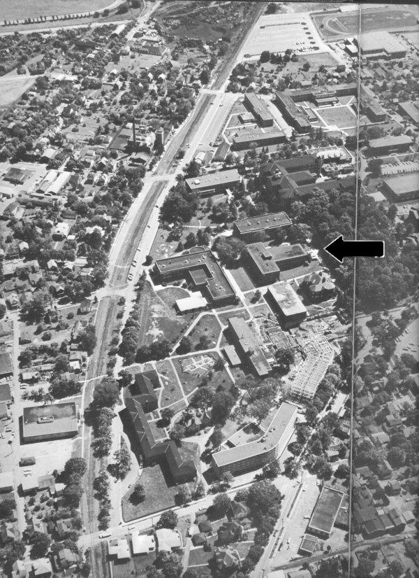 into Jane Leonard Hall II (now demolished) - and Wilson Hall is in the background