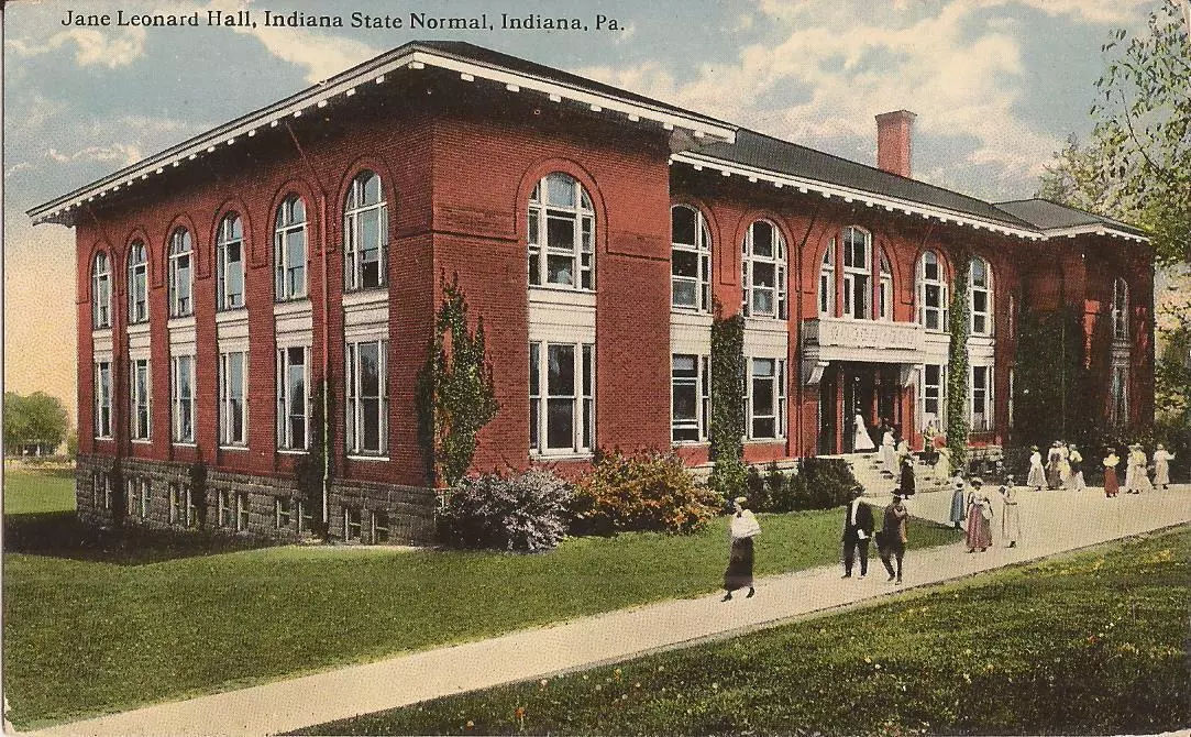 Jane Leonard "was one of the original staff members at IUP (then Indiana Normal School) when it opened on May 17, 1875, with 150 students and one building. Leonard outlasted all other faculty who began work with her on that opening day, serving IUP for 46 years through financially challenging times." (Source)
