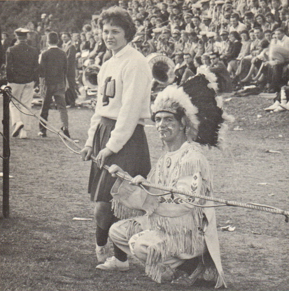 Historical photographs of IUP mascot Indians featured in the 1954, 1956, 1958, 1960, 1961, 1977, 1978, and 1985 annual yearbooks. (FYI: The last IUP annual yearbook was published in 1996.)
