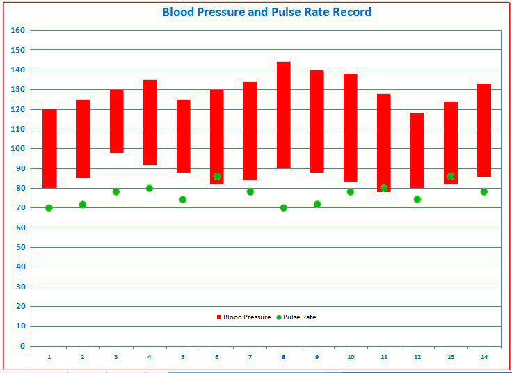 7. To change the graph title, e.g., to Blood Pressure and Pulse Rate Record -