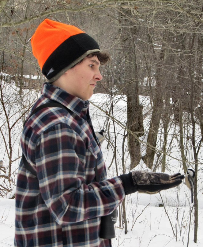 Daniel Winstead with Two Chickadees near Indiana, Pennsylvania December 28,