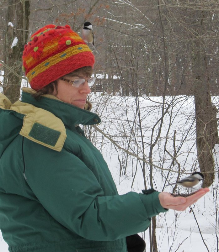 Dawn Winstead with Two Chickadees near Indiana, Pennsylvania January 1, 2013.