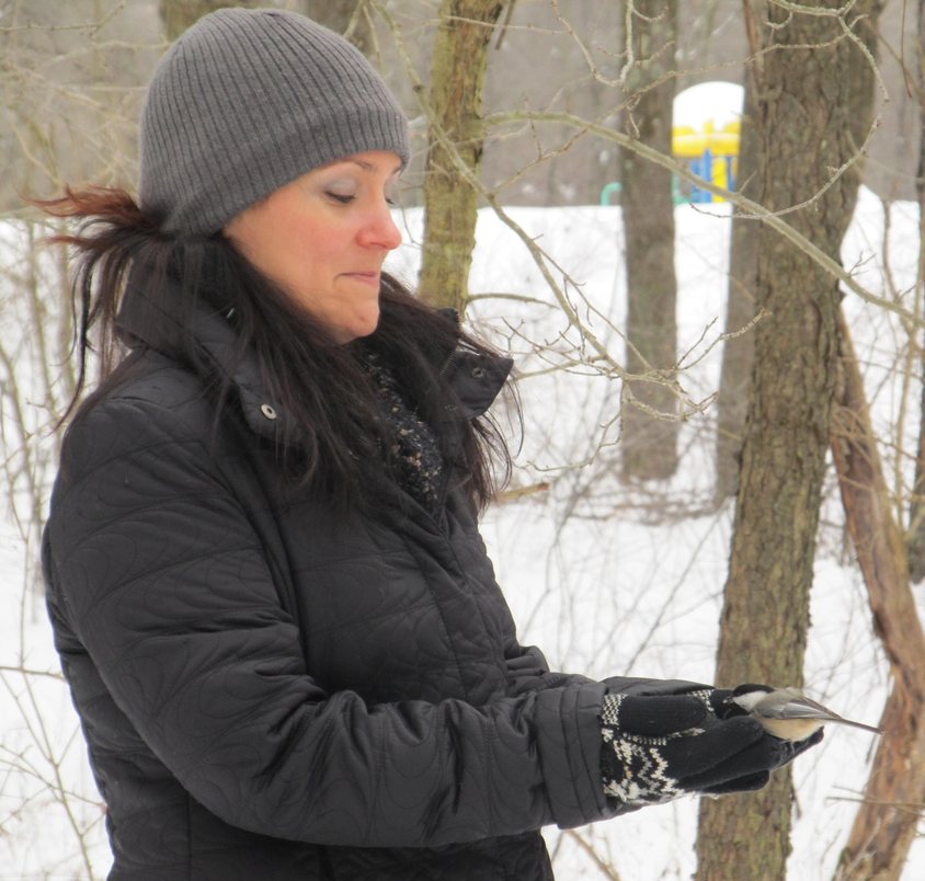 Kasey Froggatt with a Chickadee near Indiana, Pennsylvania January 3, 2013.