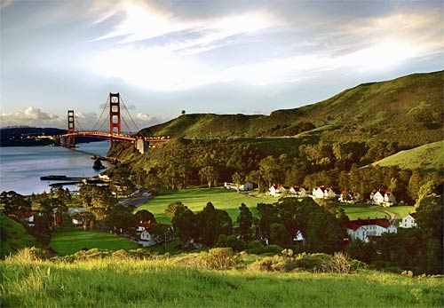 Fort Scott in forground, Golden Gate Bridge,
