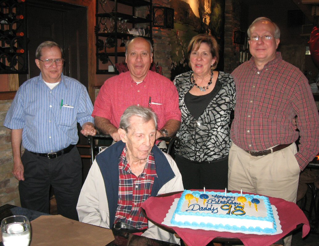 E. D. Winstead celebrating his 98th birthday with his children.