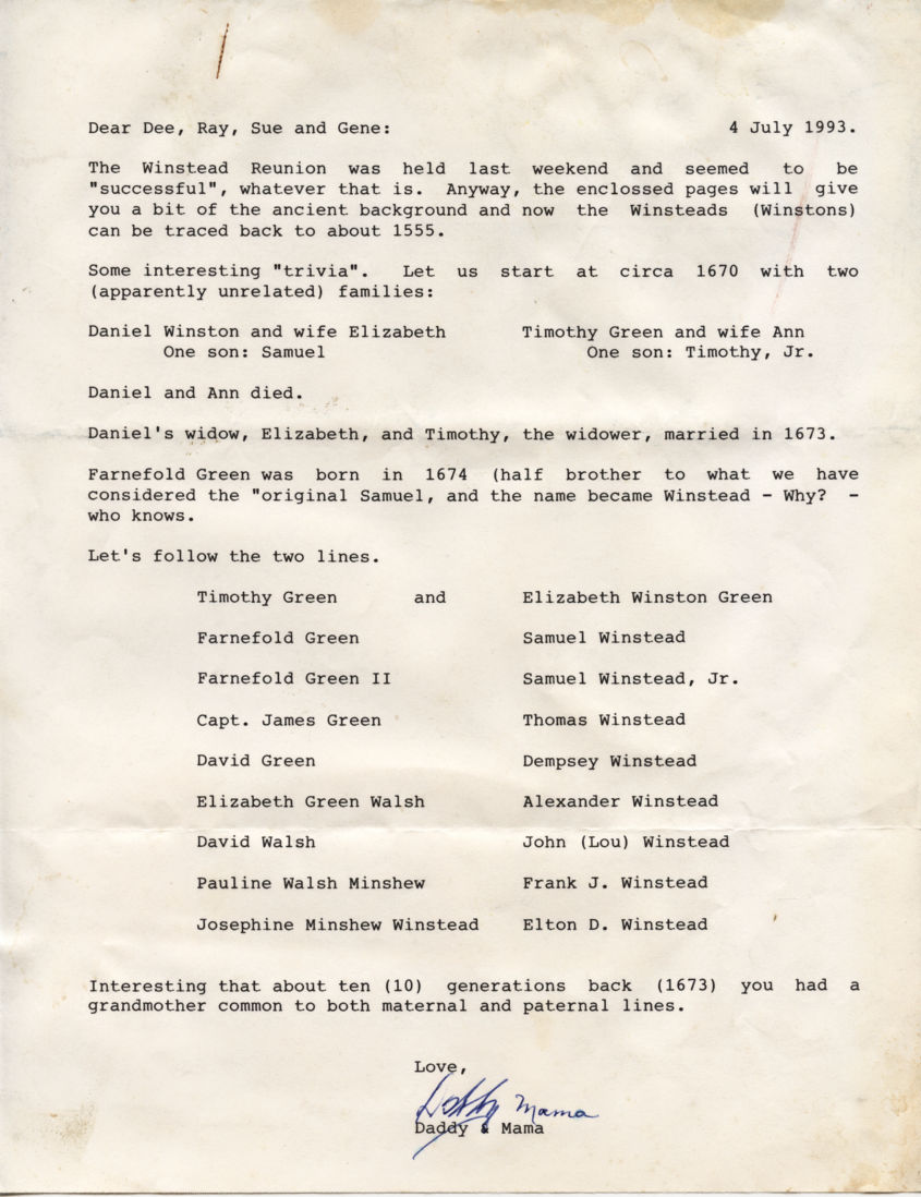 Winstead had the same “grandmother” Elizabeth Winston Green