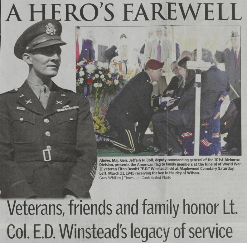 Dr. Winstead was born in 1913 in Wilson, grew up in Wilson, and lived a life of honor and integrity serving his country, community, and family.