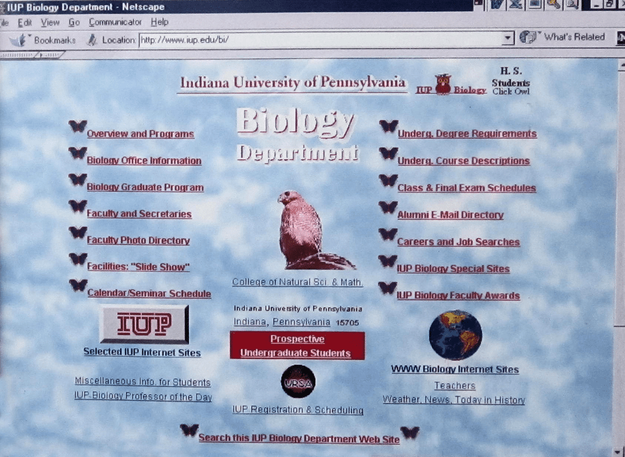 Department of Biololgy Website Frontpage in 2001