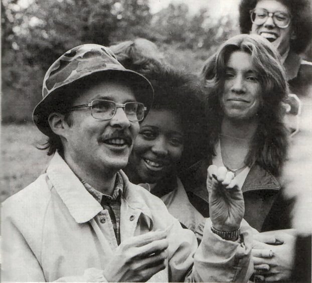 Dr. Ray L. Winstead holding a grasshopper (and toothpick as a paint brush)